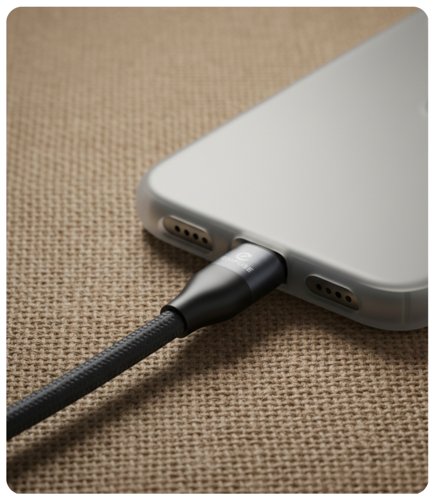 The Enfuse USB-A to USB-C Cable delivers stable and efficient charging when used